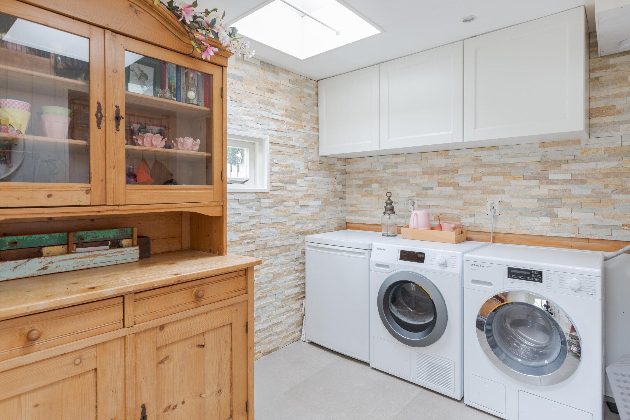 Parkeren doe je natuurlijk op je eigen oprit, groot genoeg voor meerdere auto's. En zodra je de hal binnenstapt word je getrakteerd op een geweldige sfeer. Woonkamer met erker en balkenplafond. Veel ramen dus veel licht. De keuken in de uitbouw is van alle gemakken voorzien. Via de keuken kom je in de bijkeuken met toilet en plek voor je wasmachine.