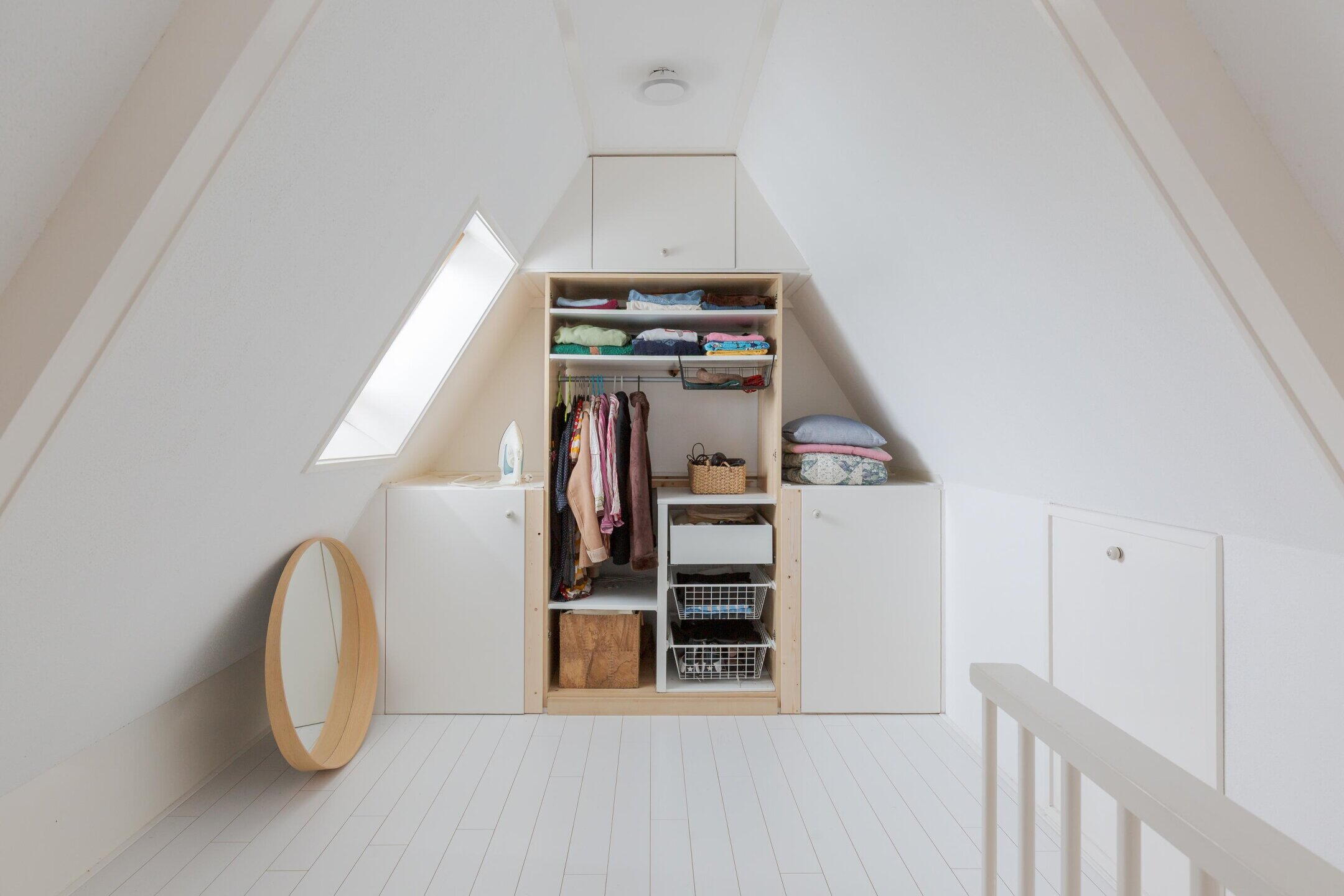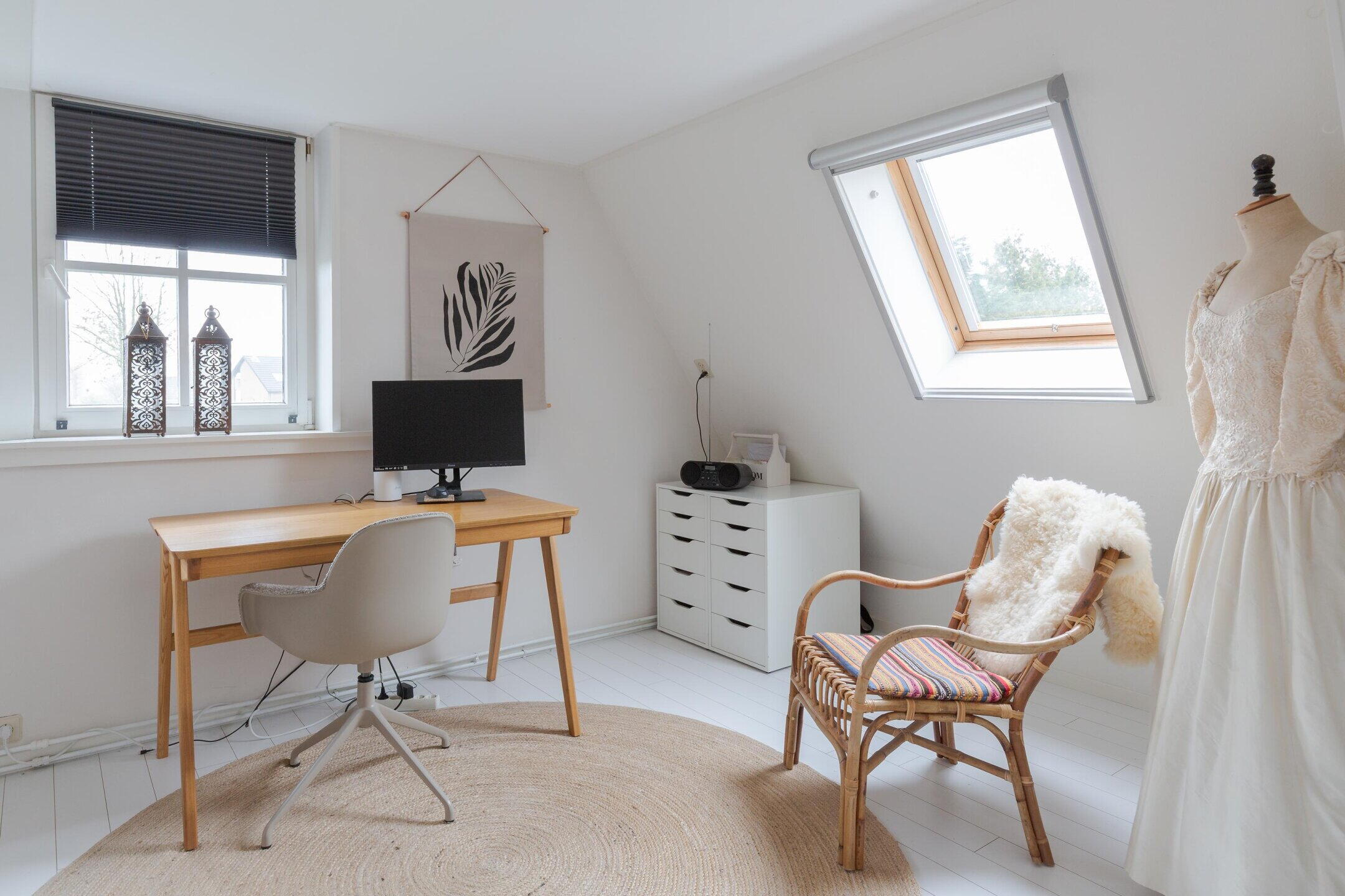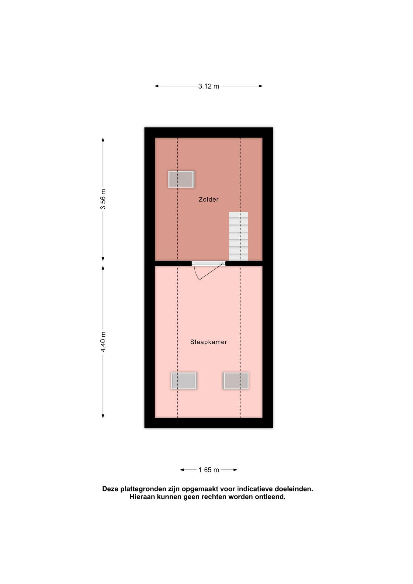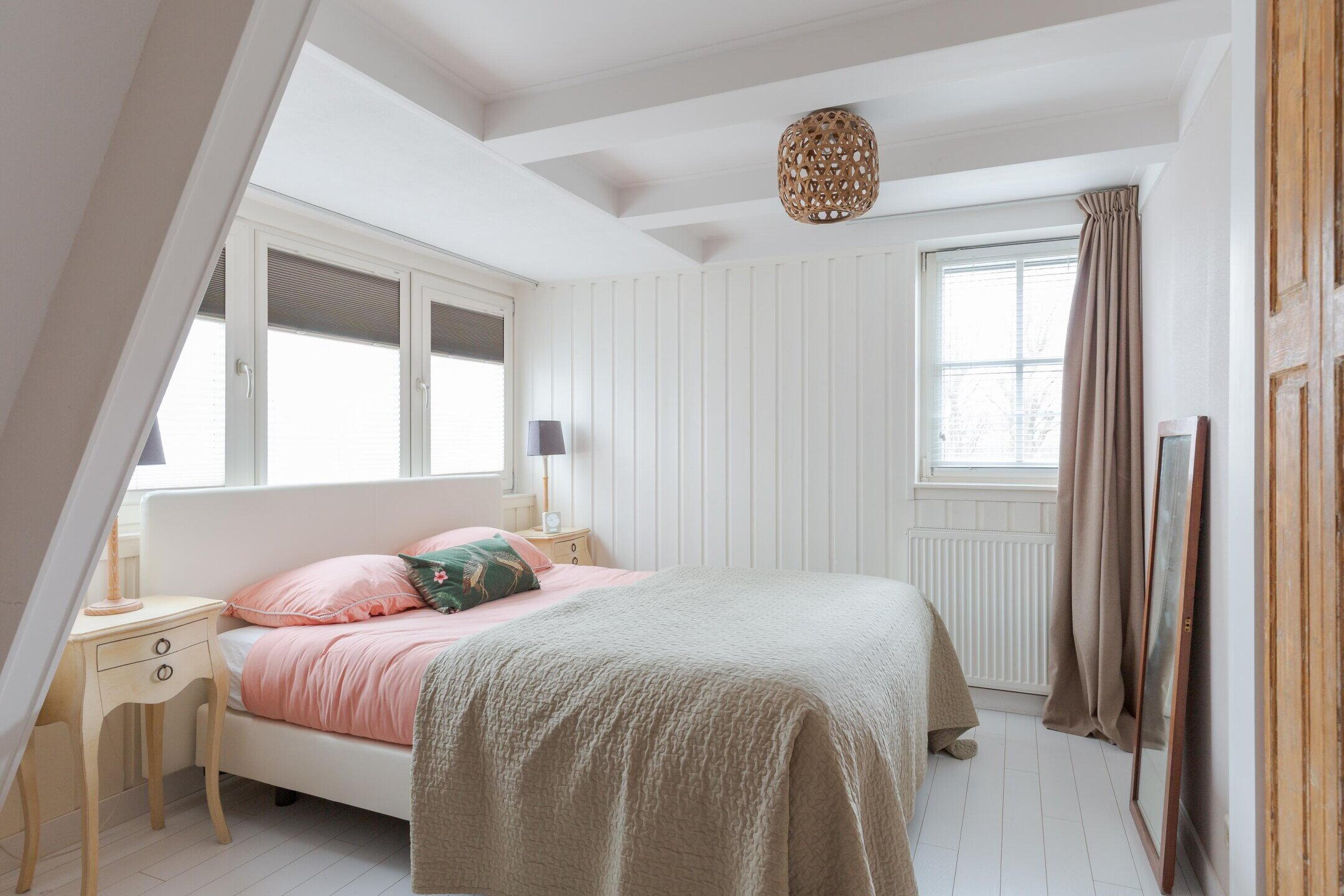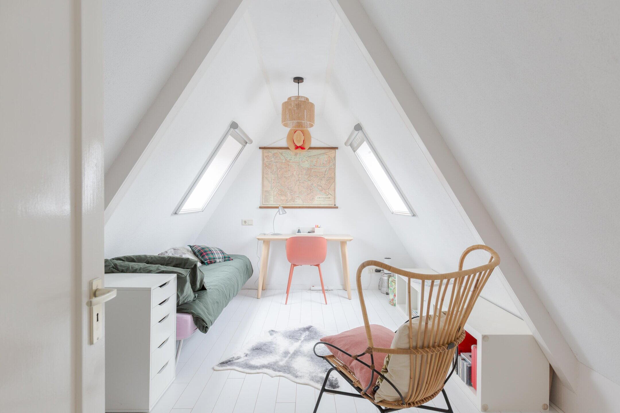Een vaste trap brengt je naar de tweede verdieping met nog eens een slaapkamer en bergruimte.